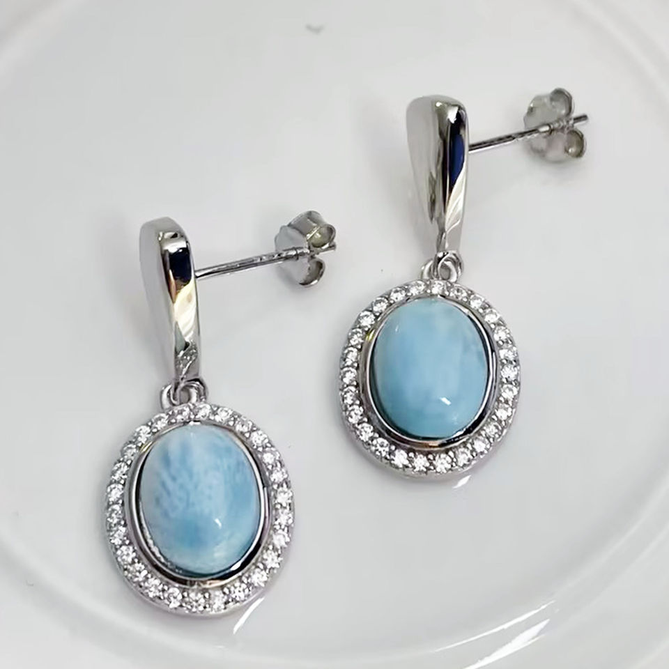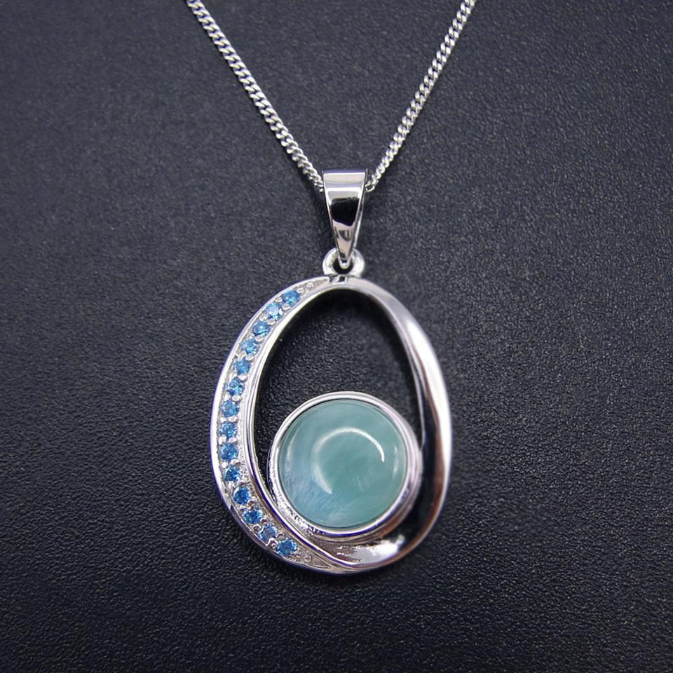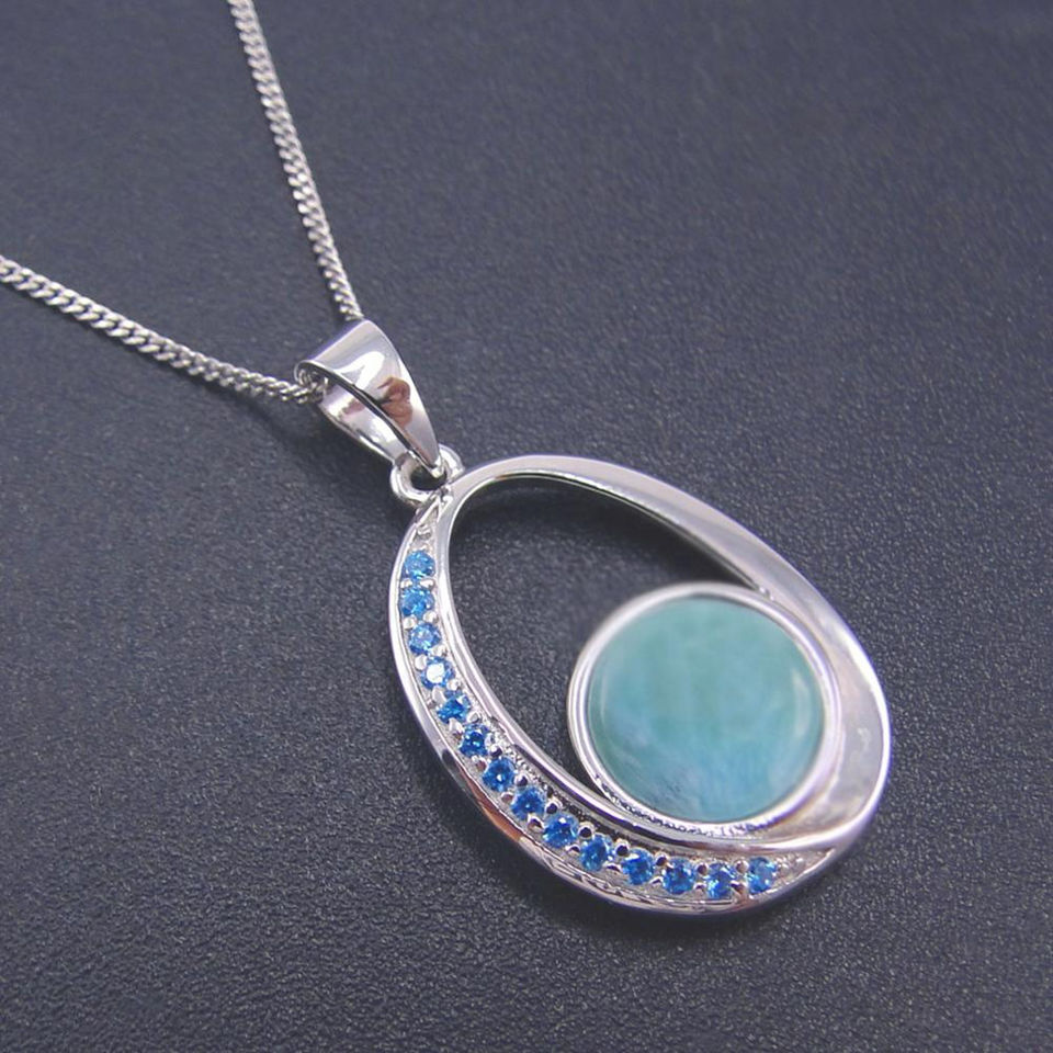 จี้เงินแท้ประดับพลอยลาร์ิมาธรรมชาติและบลูโทแพซ ขายส่ง