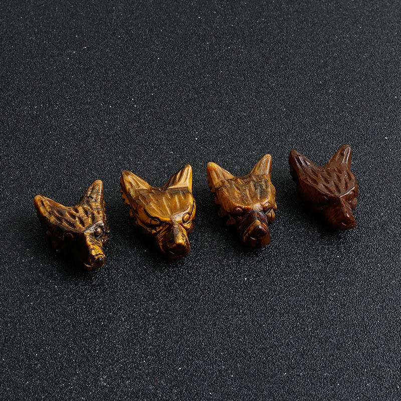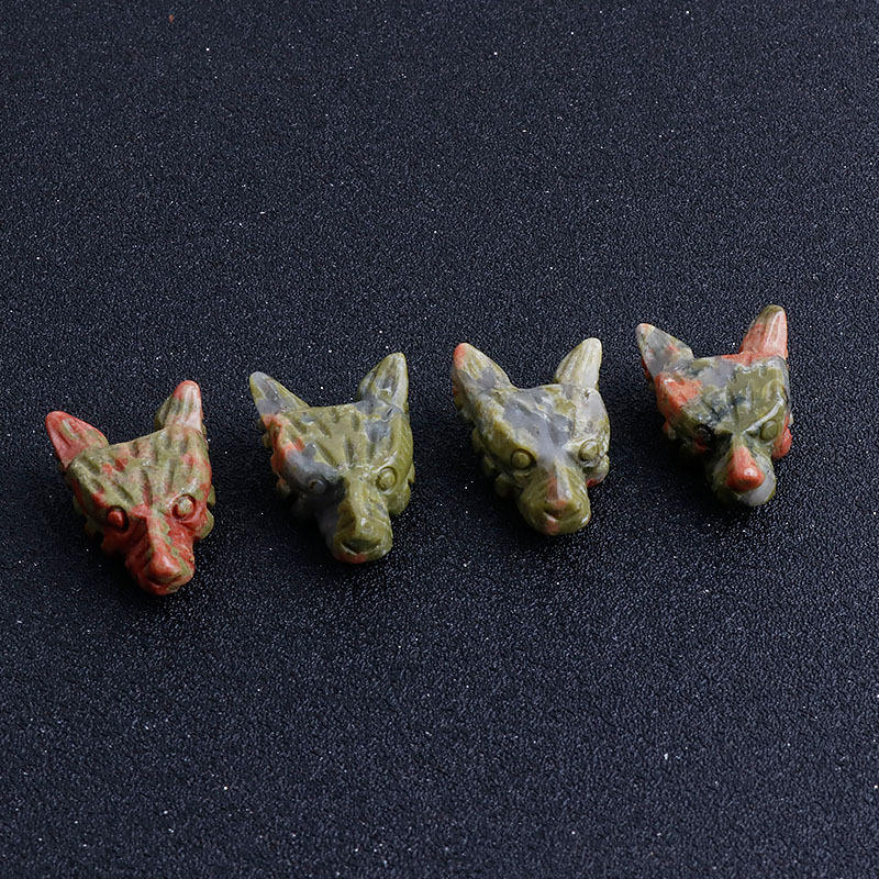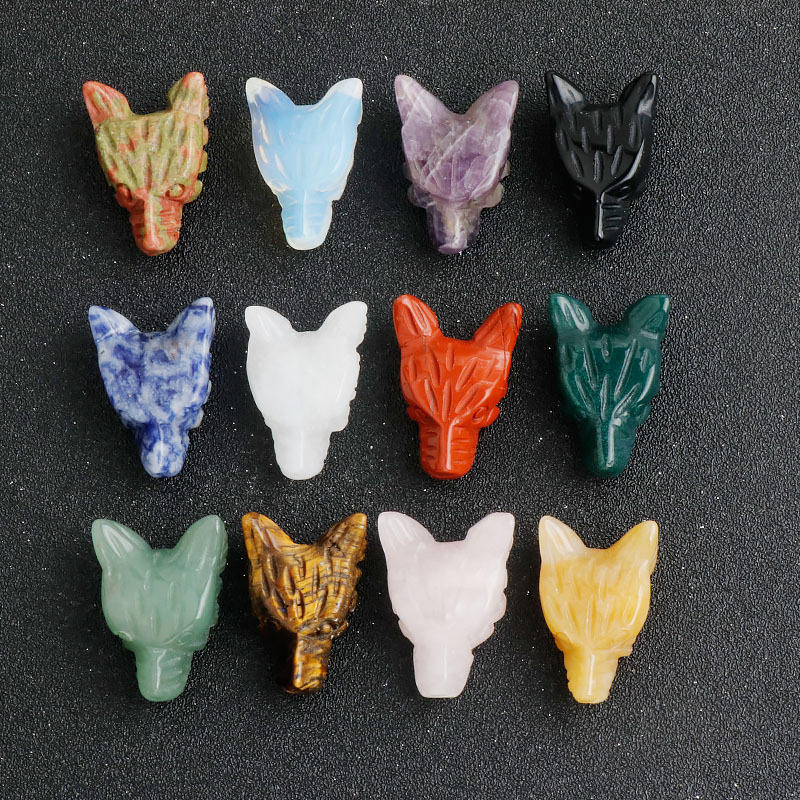 งานแกะสลักหัวหมาป่าขนาดเล็กจากหินโรสควอตซ์ ดรีมอะเมทิสต์ และคริสตัลอื่นๆ สำหรับขายส่ง เหมาะสำหรับเป็นของขวัญ