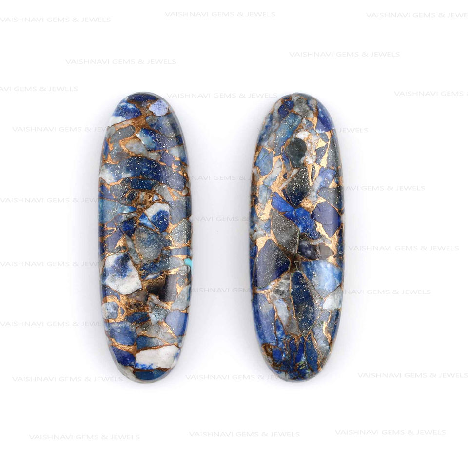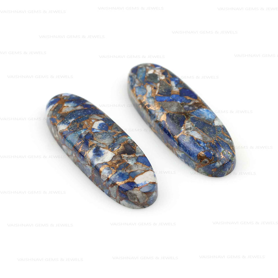 Lapis Lazuli ทองแดงโมเนตธรรมชาติขายส่งยาวรี10X30มม. แบนปรับเทียบ Cabochon สีฟ้าหลวมสำหรับการทำเครื่องประดับ