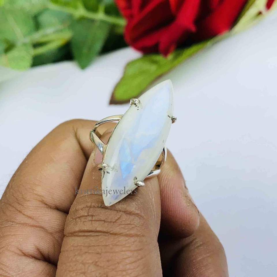แหวนแต่งงานเงินแท้ 925 ประดับพลอยมูนสโตนธรรมชาติ ดีไซน์ใหม่ ทำมือ คลาสสิก สีรุ้ง บลูไฟร์ มูนสโตน ขายส่ง