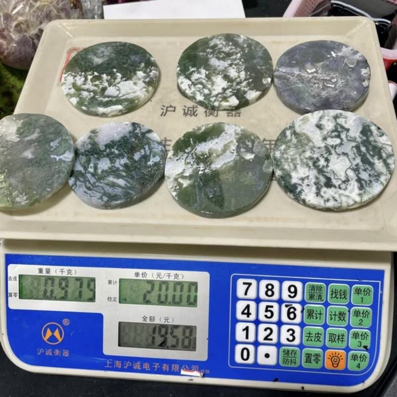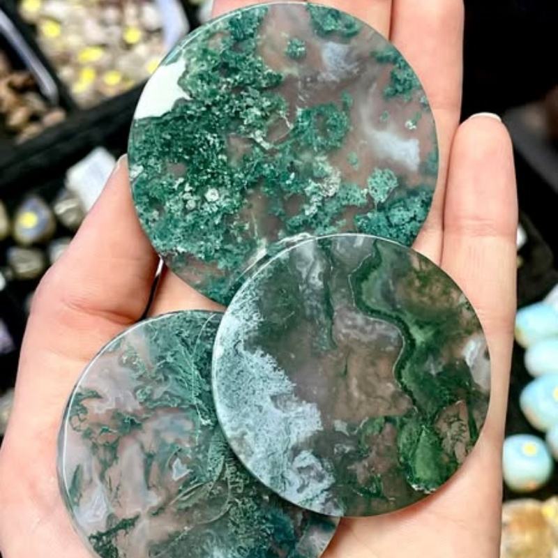 แผ่นหินมอสอะเกตธรรมชาติแบบขายส่ง คริสตัลควอตซ์สไตล์เฟิงสุ่ย แกะสลักลาย สำหรับทำที่วางโทรศัพท์มือถือ ของตกแต่งบ้าน และของขวัญ