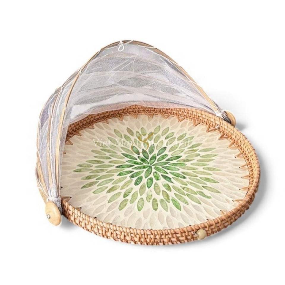 ฝาครอบอาหารเปลือกหอยมุกธรรมชาติขายส่ง งานฝีมือจากเวียดนาม สำหรับปกป้องอาหารและตกแต่งโต๊ะอาหาร