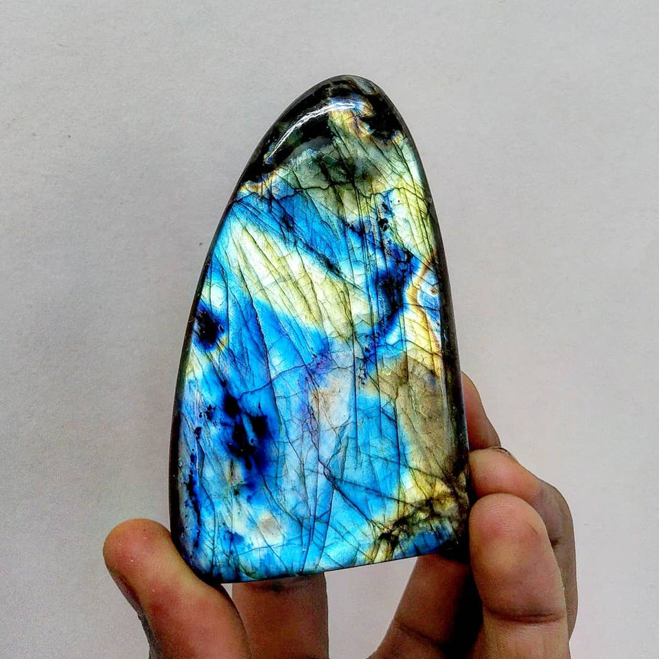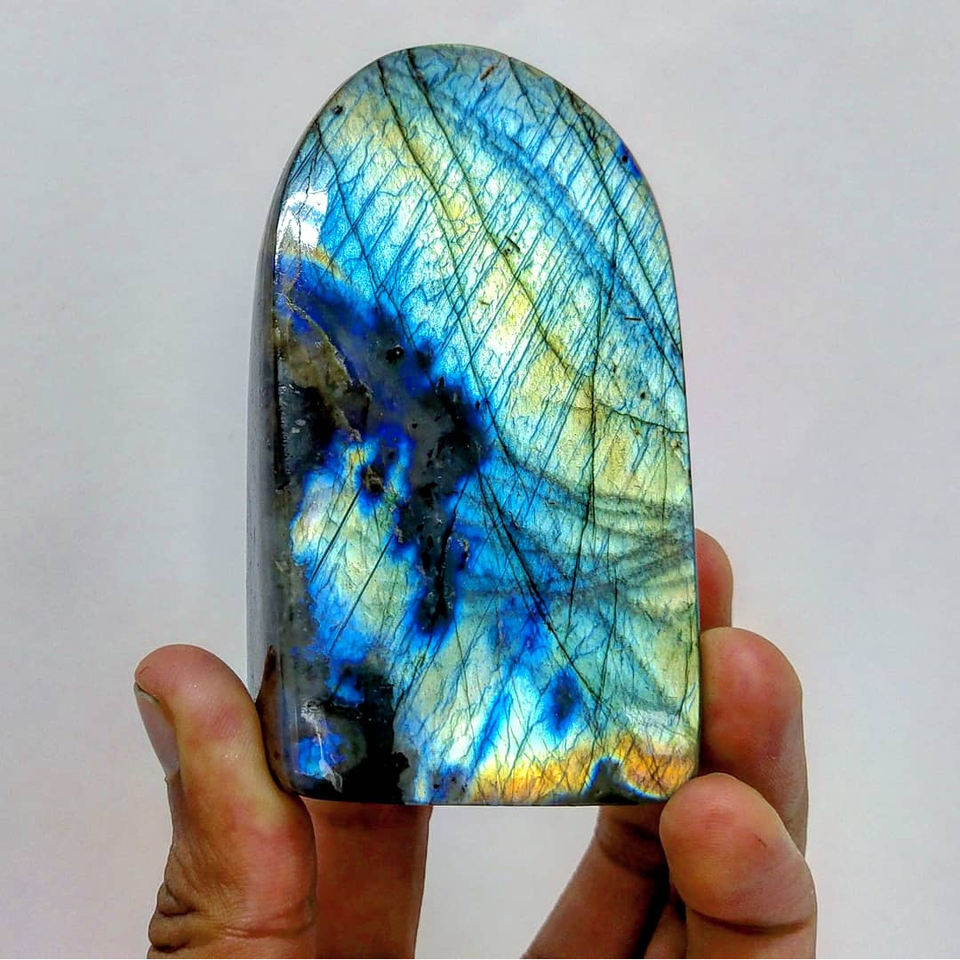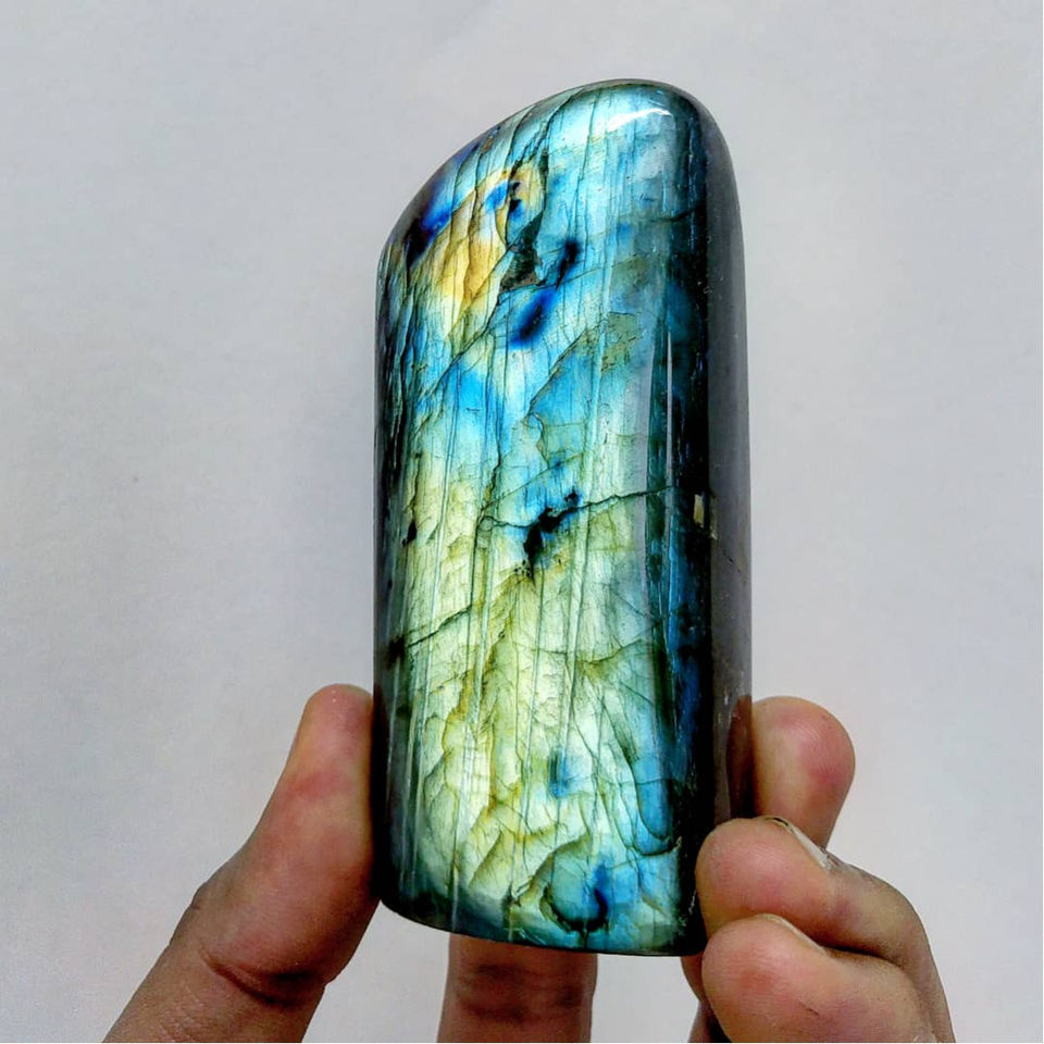 ลาบราดอไรต์ธรรมชาติหลากสีคุณภาพสูง ควอตซ์สีเหลืองทรงรี รับรองโดย GIA สำหรับตั้งโชว์ คริสตัลบำบัดมีประกายสวยงาม ขายส่ง
