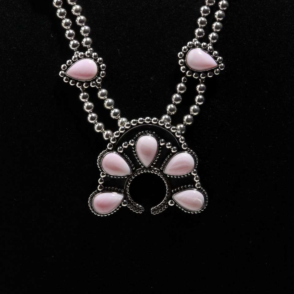 จี้เงินแท้ 925 รูปทรงลูกแพร์ประดับเปลือกหอยสีชมพูธรรมชาติ พร้อมสร้อยคอเงินแท้ประดับเปลือกหอยสีชมพู