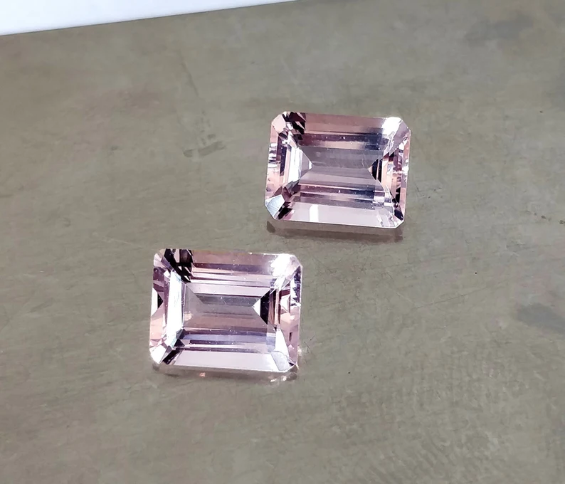 พลอยสีชมพูมอร์กาไนต์แปดเหลี่ยม4X3ถึง6x4พลอยเจียระไนแบบมรกตอัญมณีคุณภาพ AAA