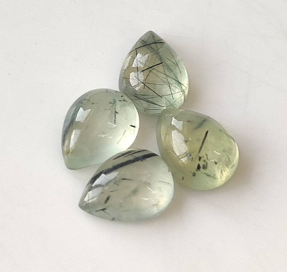 พลอยเพรนไนต์สีเขียวธรรมชาติขายส่ง ขนาด 3x5 มม.-20x30 มม. รูปทรงลูกแพร์แบบคาโบชอง ด้านหลังแบน พลอยหลวม เปลี่ยนสีได้ เหมาะสำหรับทำเครื่องประดับ
