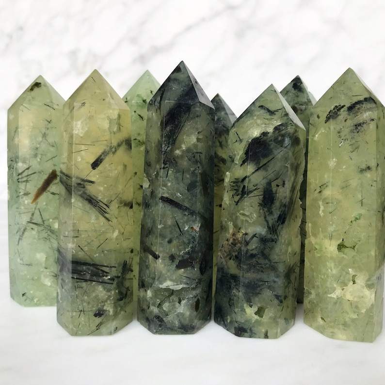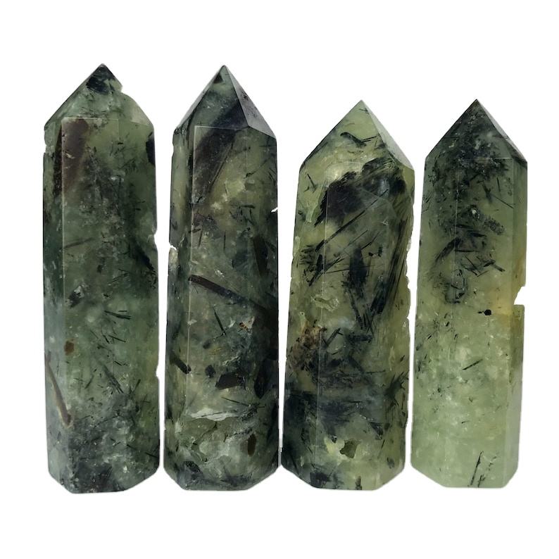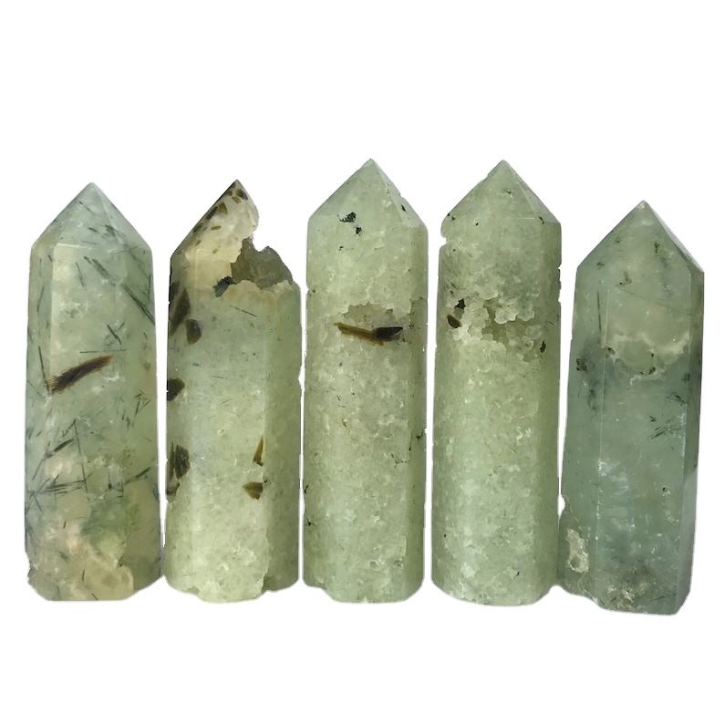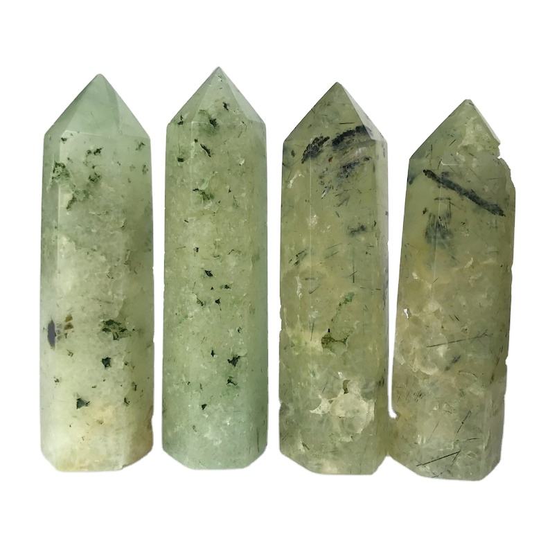 หินควอตซ์เพรนไนต์สีเขียวขัดเงาขายส่ง รูปทรงโอเบลิสก์ อัญมณีแห่งความรักตามธรรมชาติ สำหรับตกแต่งบ้านตามหลักฮวงจุ้ย หินคริสตัลทรงหอคอย ขนาด 4 นิ้ว