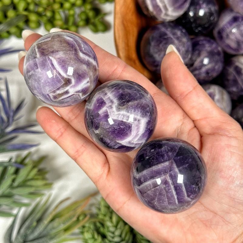 ลูกแก้วคริสตัลอาเกตสีม่วงธรรมชาติแบบขายส่ง ลูกแก้วอะเมทิสต์ทรงกลมสำหรับทำของที่ระลึก DIY และของขวัญ