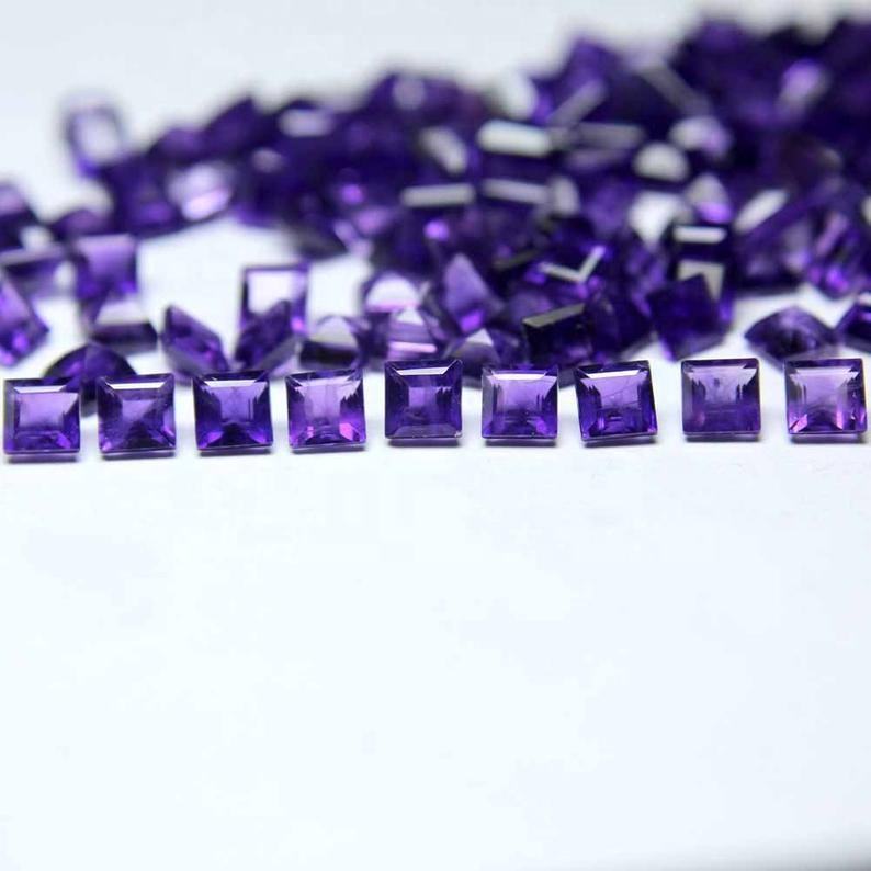 พลอยอเมทิสต์ทรงเหลี่ยมเพชรพลอยอัญมณีหลวมปรับขนาดตามธรรมชาติ