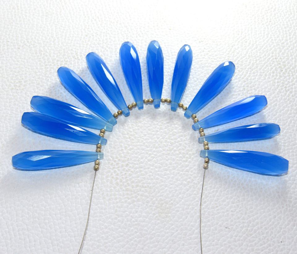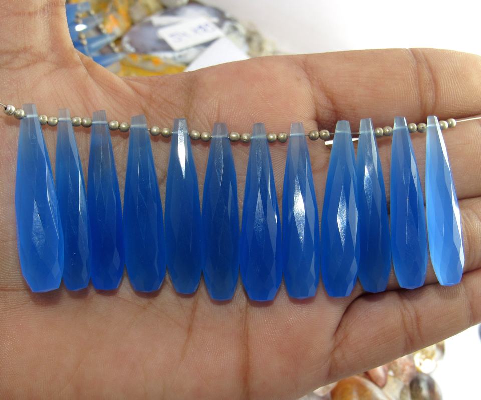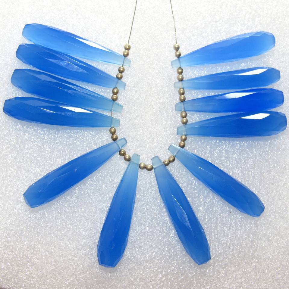 พลอยคาลซิโดนีพลอยสีฟ้าพลอยสีฟ้าทรงหยดน้ำตาสำหรับทำเครื่องประดับสร้อยคอแบบหลวมราคาต่อกะรัต