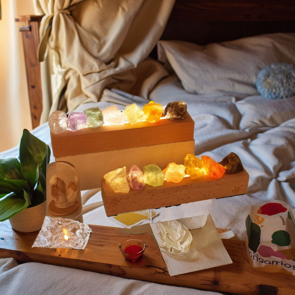 โคมไฟคริสตัลสีรุ้งธรรมชาติสำหรับยามค่ำคืนในห้องนอนโคมไฟสร้างบรรยากาศแบบขัดเงาสำหรับของขวัญขึ้นบ้านใหม่
