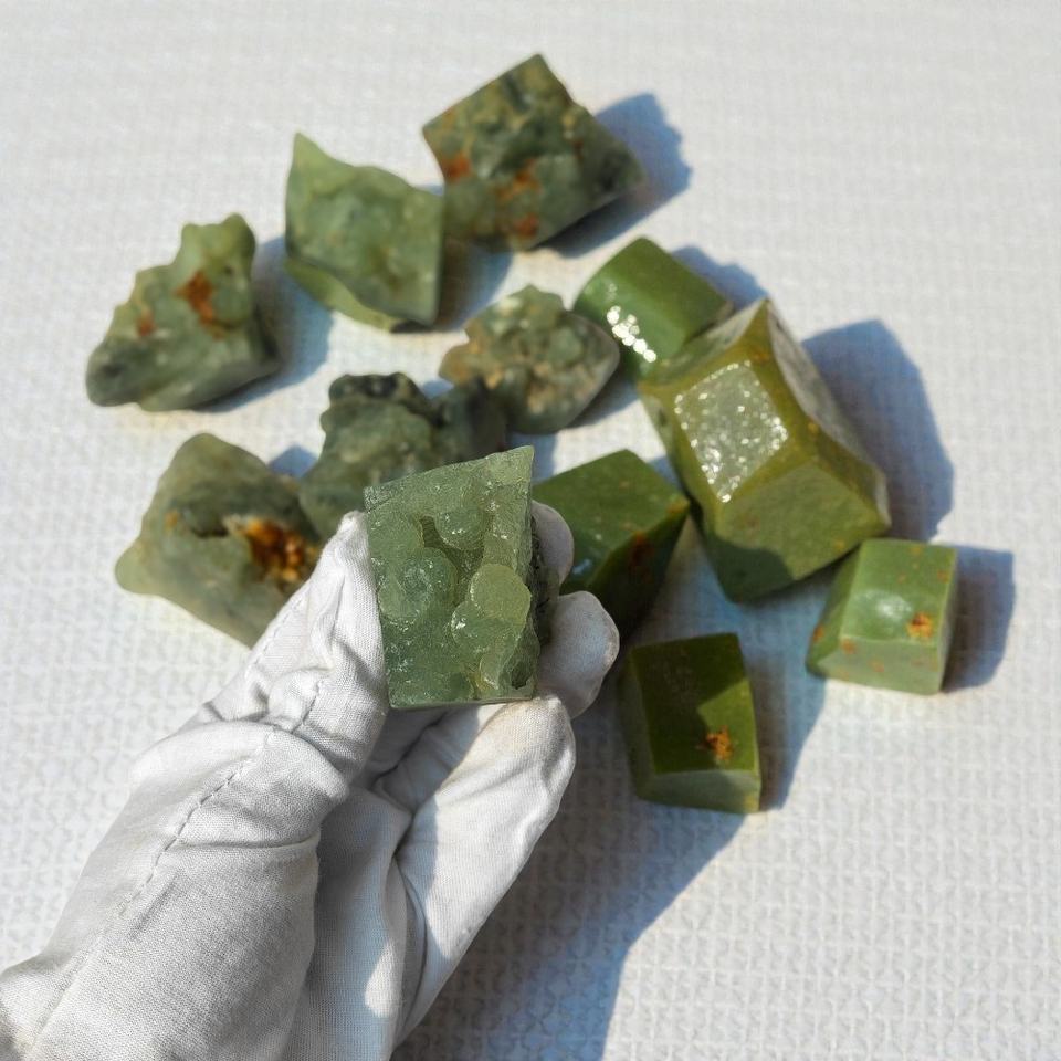 หินเพรนไนต์ธรรมชาติคุณภาพสูงขายส่ง คริสตัลสีเขียวดิบ ตัวอย่างแร่ธาตุสำหรับตกแต่งบ้าน บำบัดตามหลักฮวงจุ้ย