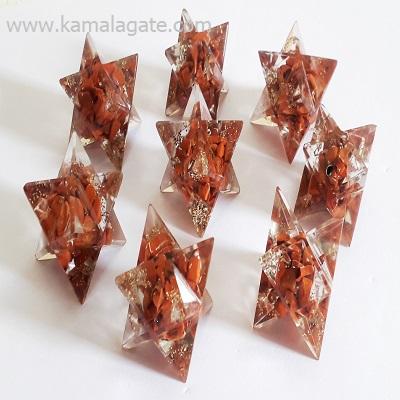 หินธรรมชาติสีแดงแจสเปอร์รูปดาวออร์โกน หินกึ่งมีค่า งานฝีมือทำด้วยมือ สำหรับการบำบัดด้วยเมอร์คาบาสตาร์ ออร์โกไนต์ ขายส่ง