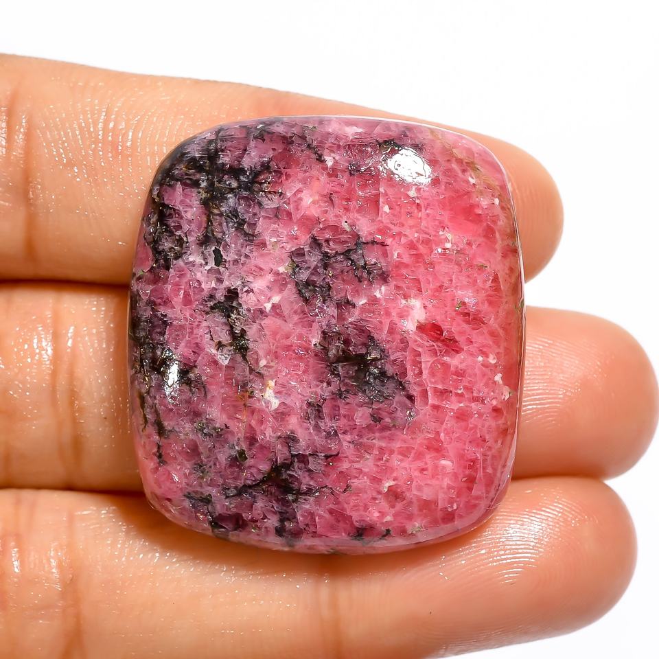 ขายส่งพลอยโรโดไลต์ธรรมชาติสีเงินสีโรสเทอร์ควอยส์เครื่องประดับทำสร้อยคอจี้แหวนพลอยพลอยหลังเบี้ยแบบเรียบ Rhodonite