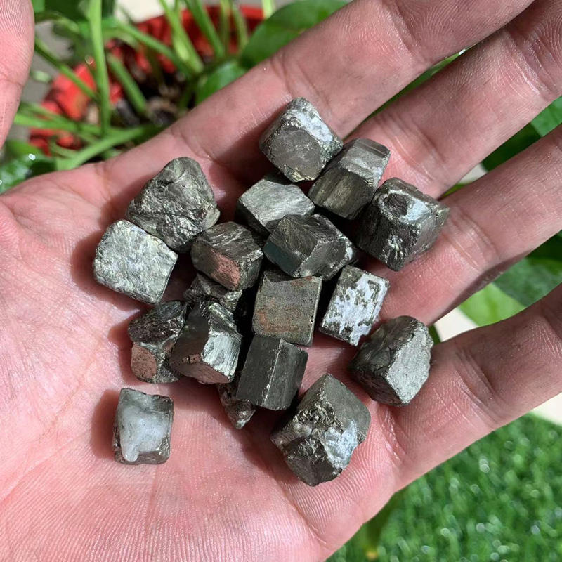 หินไพไรต์ทองแดงดิบธรรมชาติทรงลูกบาศก์ขัดเงา สำหรับตกแต่งหรือเป็นของขวัญ