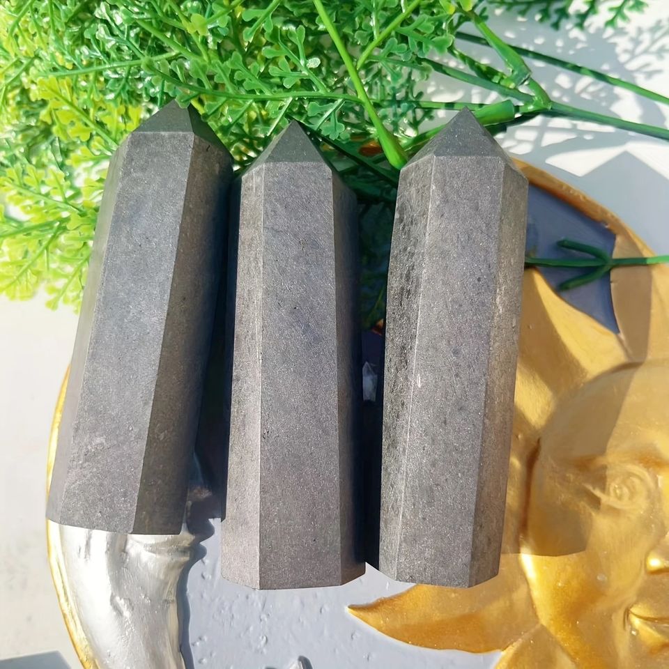 หินชุงไกต์ธรรมชาติทรงหอคอย ขัดเงาสีดำ เหมาะสำหรับตกแต่งบ้าน ของขวัญวันขอบคุณพระเจ้าและวันวาเลนไทน์