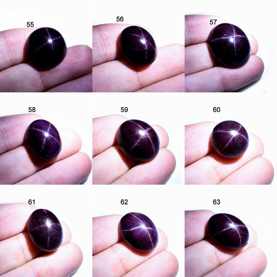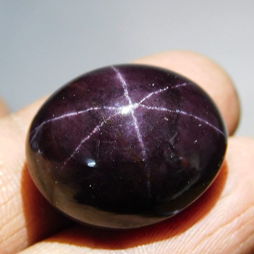 พลอยโกเมนทรงวงรีตัดเป็นรูปวงรีทำด้วยมือพลอยเจียระไนเป็นรูปดาวธรรมชาติ
