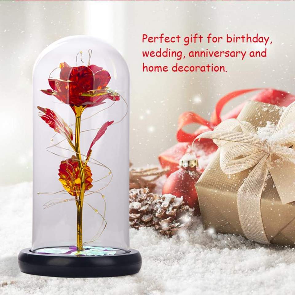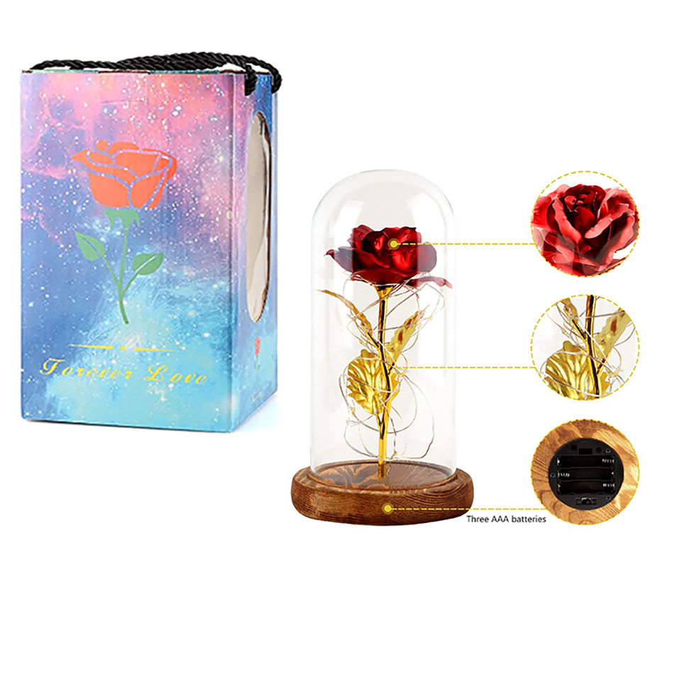 ของขวัญวาเลนไทน์ทรงโดมแก้วดอกกุหลาบประดิษฐ์ขนาดเล็กของขวัญสไตล์ธรรมชาติสัตว์ร้ายตลอดไปดอกกุหลาบที่เก็บรักษาไว้