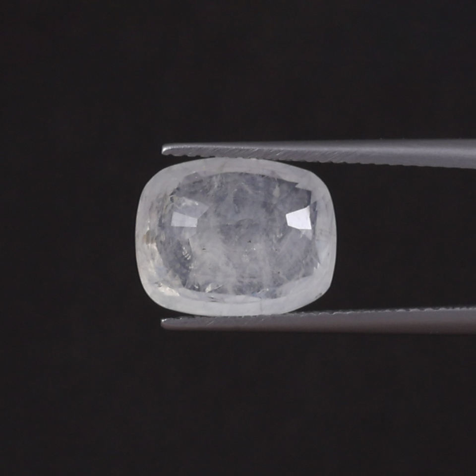 พลอยแซฟไฟร์สีขาวธรรมชาติแบบขายส่ง น้ำหนัก 7.34 กะรัต รูปทรงคุชชั่น ขนาด 12.5x10 มม. ได้รับการรับรองจาก IGI เกรด AAA สำหรับทำเครื่องประดับ