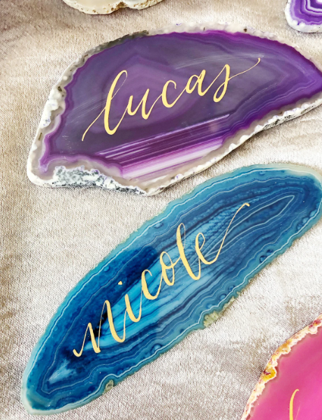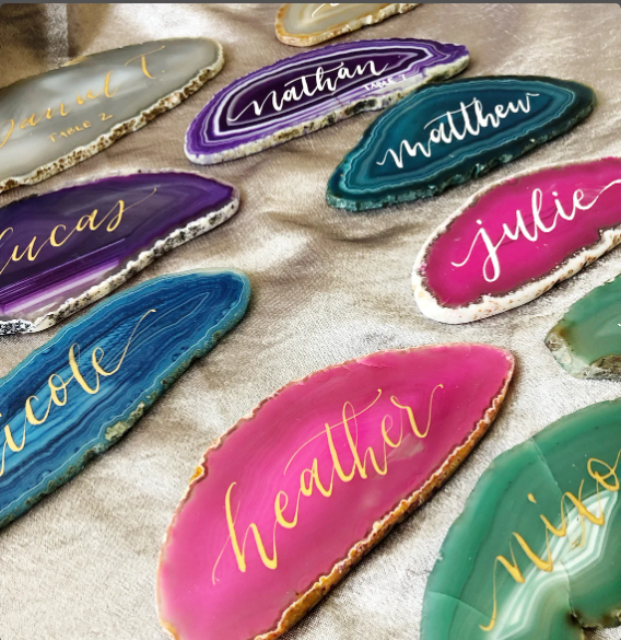 ขายส่งธรรมชาติขายส่งอาเกตธรรมชาติ Slice Place การ์ดหิน Place Card