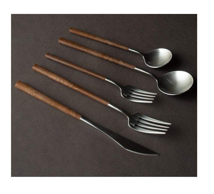 ชุดช้อนส้อมมีดด้ามไม้ธรรมชาติชุดกล่องของขวัญชุดช้อนส้อมมีด304พร้อมด้ามไม้ไผ่