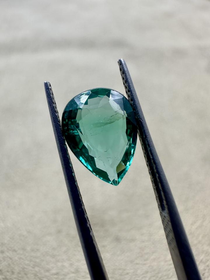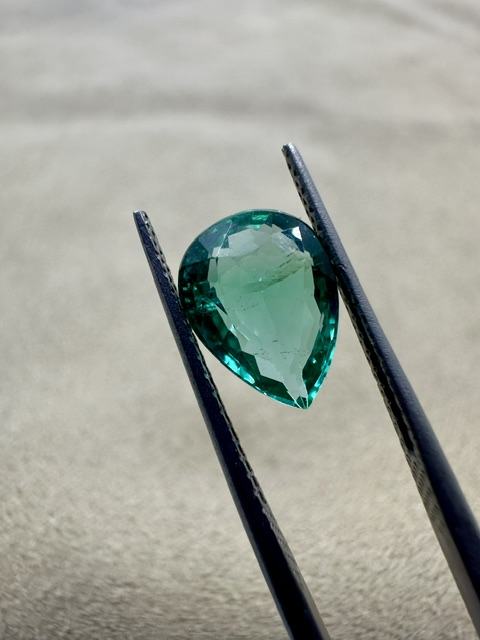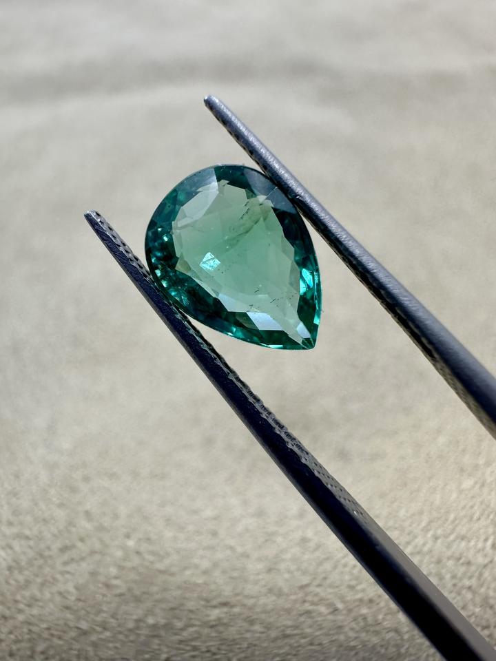 ลูกแพร์พลอยสีเขียวแซมเบียธรรมชาติอัญมณีสีเขียวเจียระไนแบบหลวมได้รับการรับรอง