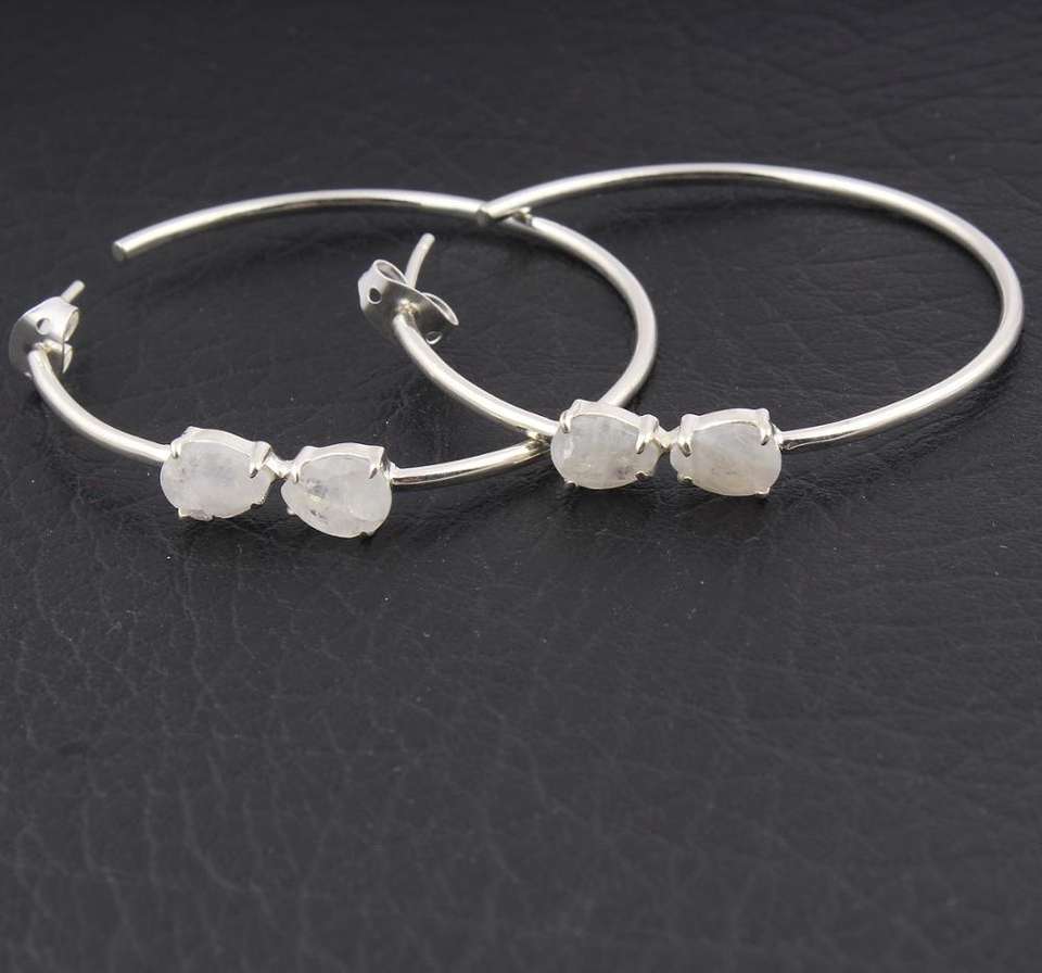ขายส่งธรรมชาติรุ้งมูนสโตนต่างหูห่วงซื้อทำด้วยมือสตั๊ดต่างหูตัดเครื่องประดับอัญมณีต่างหูซ้อน