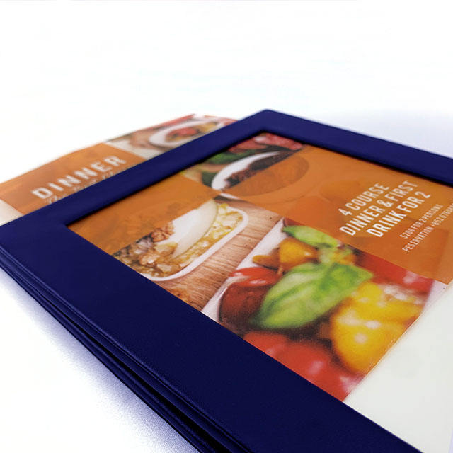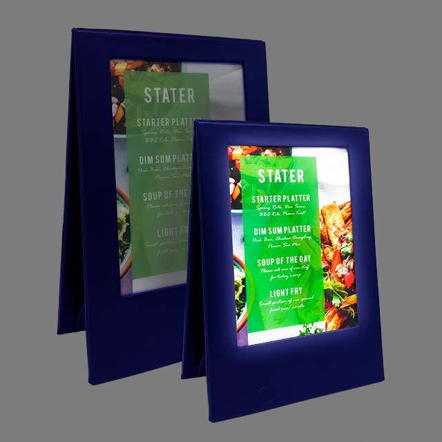 การ์ดเต็นท์แบบดิจิตอลสำหรับโต๊ะอาหาร A6 A5สีฟ้าอ่อน