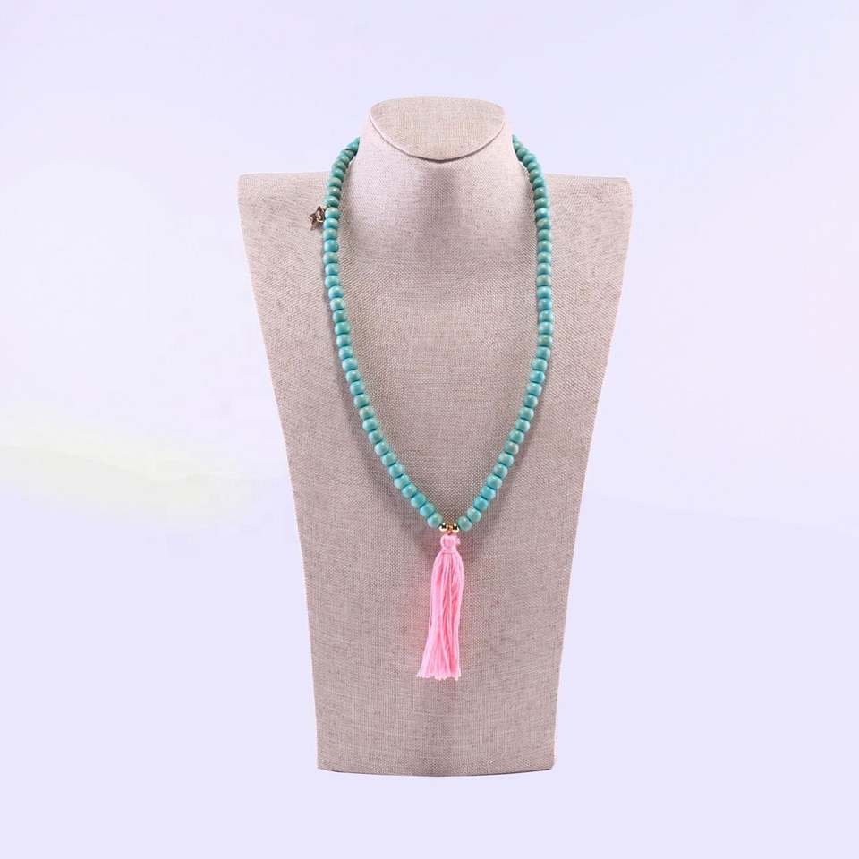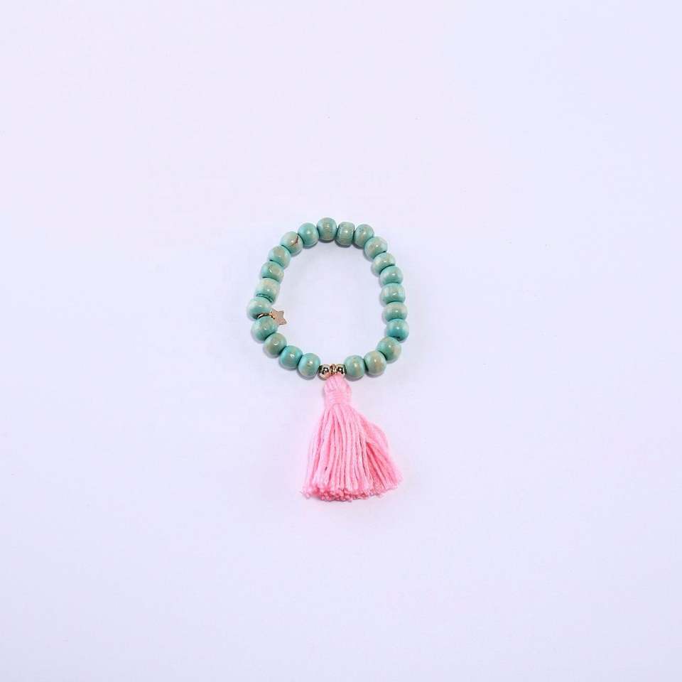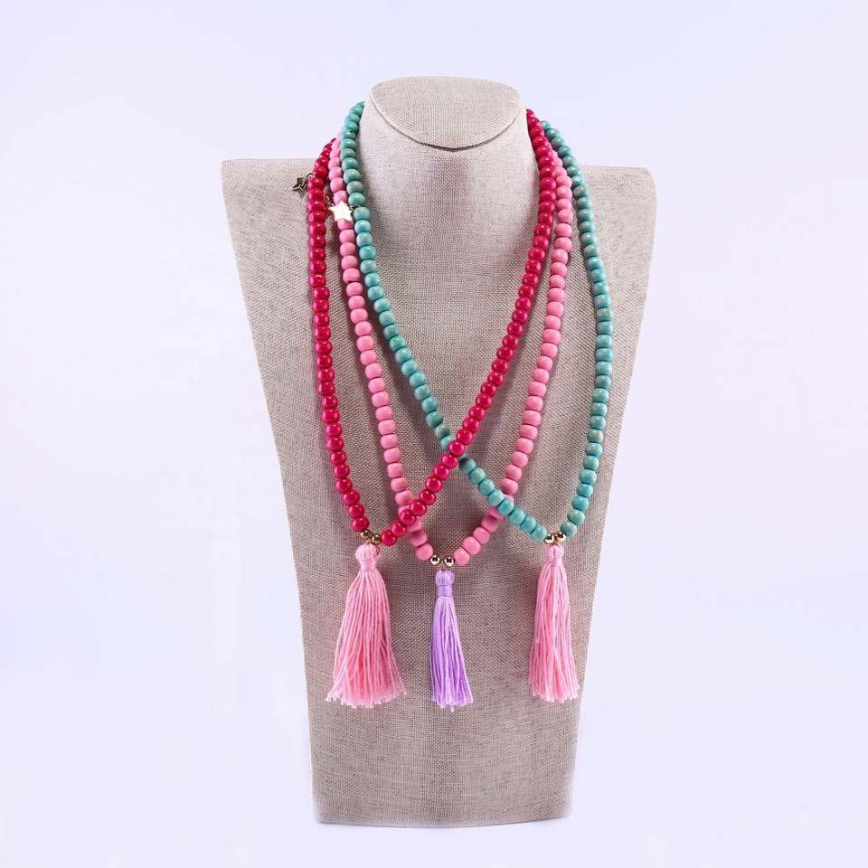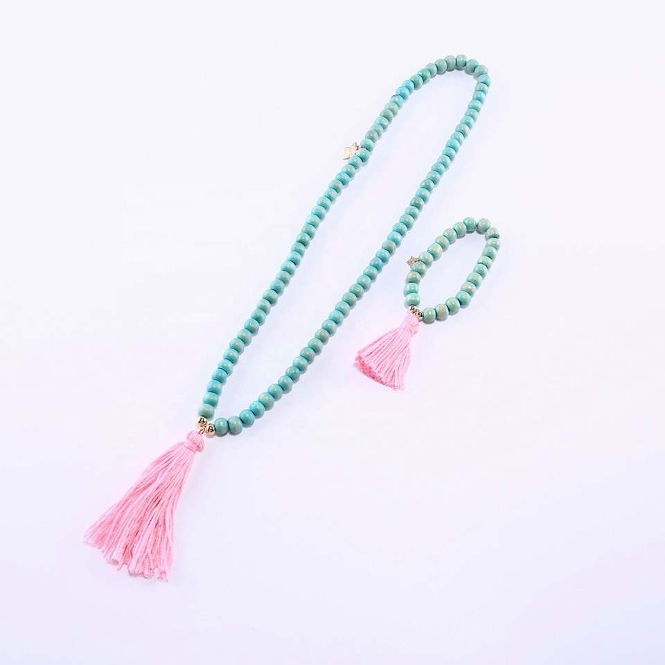 ชุดสร้อยข้อมือสร้อยคอสำหรับเด็กลูกปัดไม้พร้อมสร้อยคอพู่