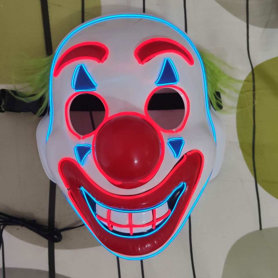 หน้ากากปาร์ตี้พีวีซีเรืองแสงไฟสายเอลชุดฮาโลวีนมีแฟนซีตัวตลกโจ๊กเกอร์กระพริบสำหรับปาร์ตี้หน้ากาก