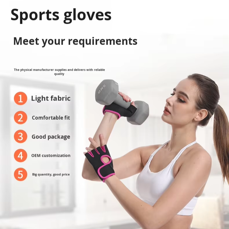 ถุงมือฟิตเนสแบบเปิดนิ้วสำหรับยกน้ำหนัก ออกกำลังกาย เล่นกีฬา ยิม ทำจากนีโอพรีน ขายส่ง