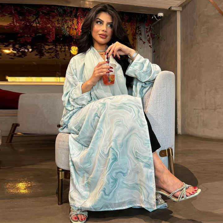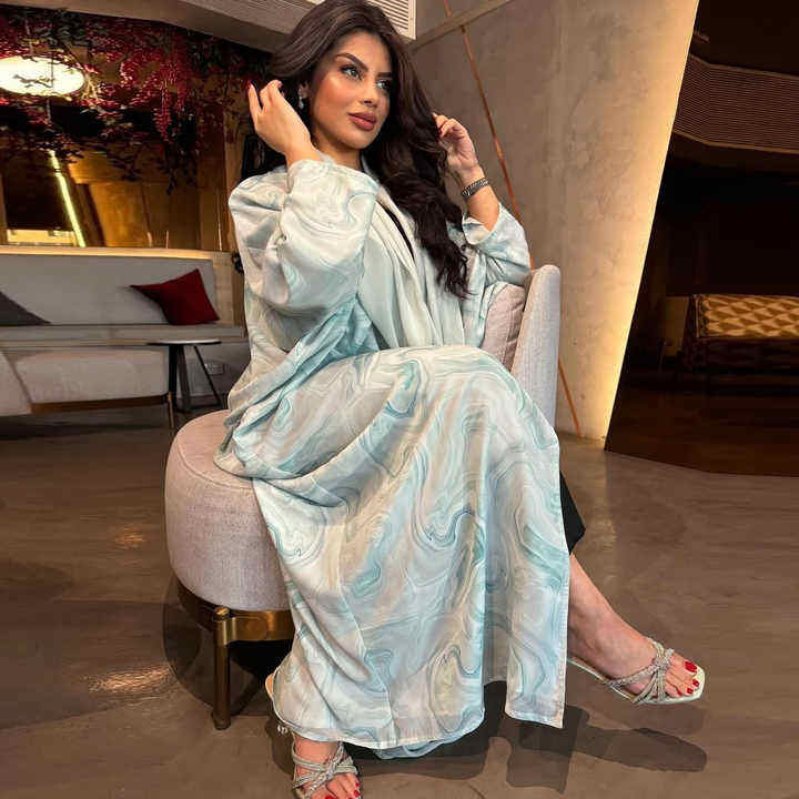 ชุดเดรสอาบายาแบบเปิดชุดกิโมโนอิสลามสำหรับผู้หญิงชุดเดรสดูไบคาฟตันพร้อมฮิญาบ