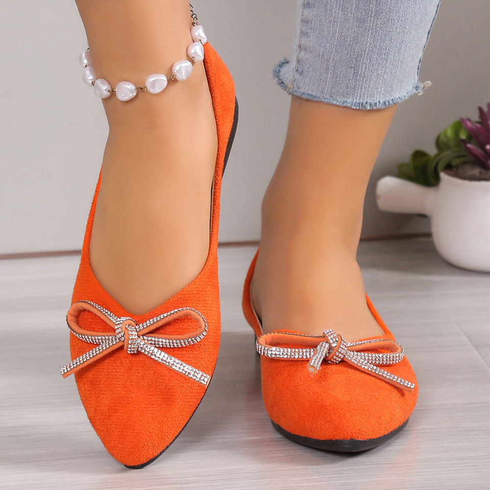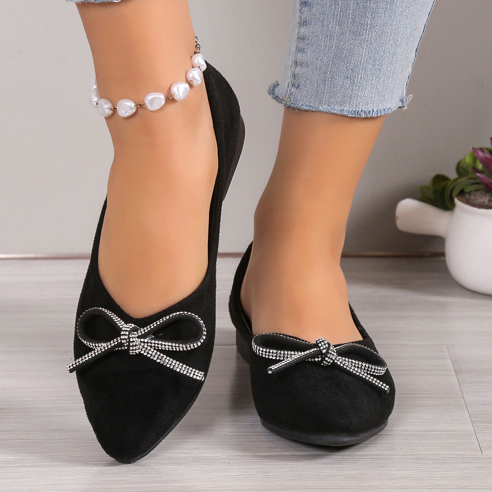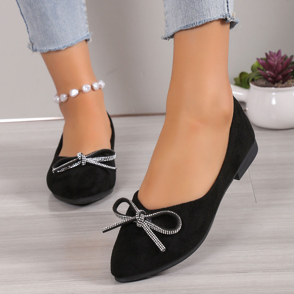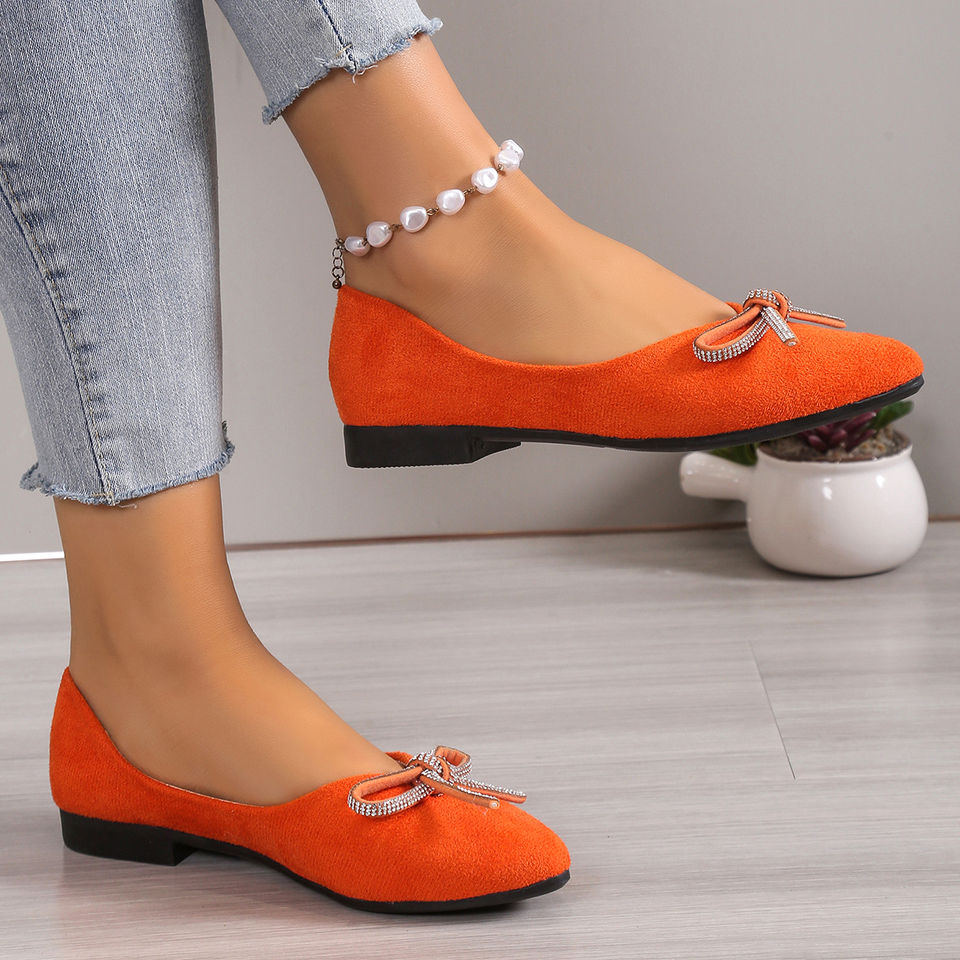 รองเท้าแฟชั่นผู้หญิงแบบแบนประดับโบว์ ขายส่งสินค้ามาใหม่ จัดส่งรวดเร็ว