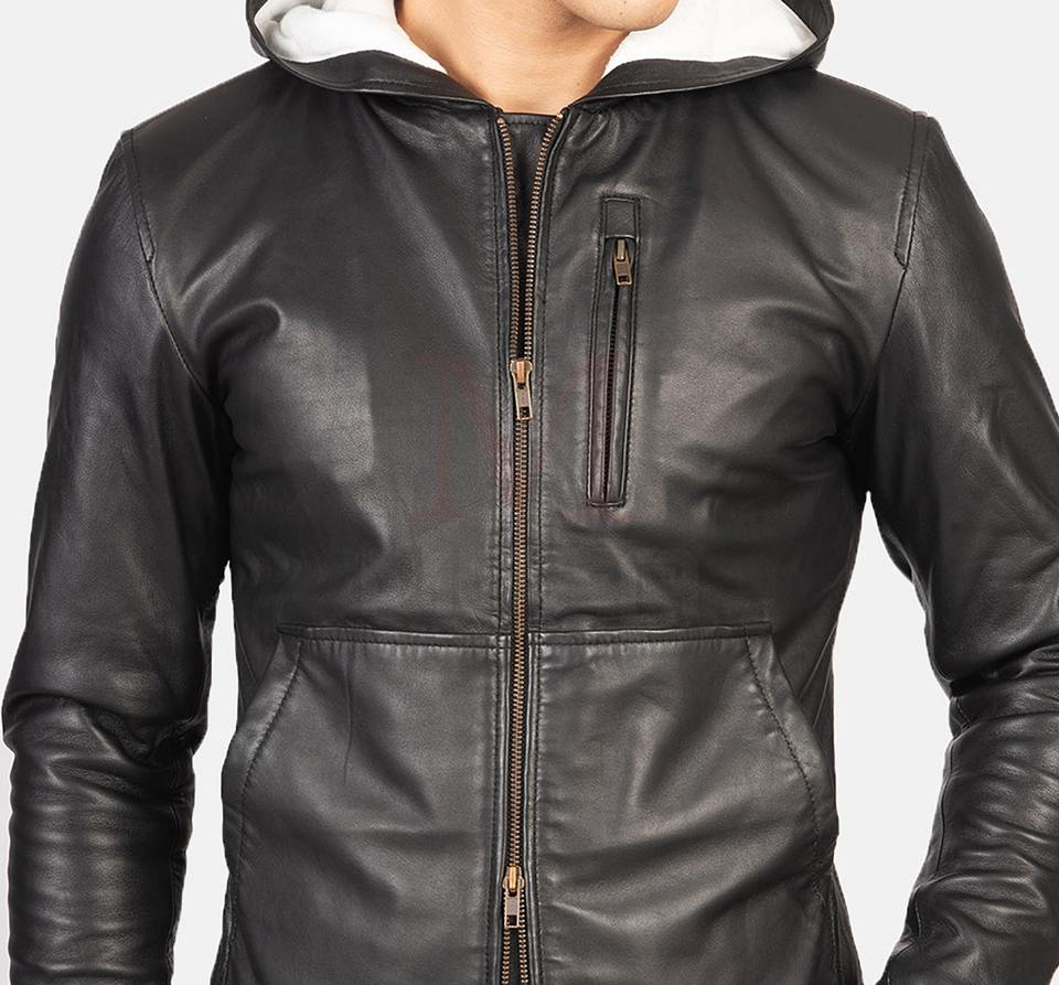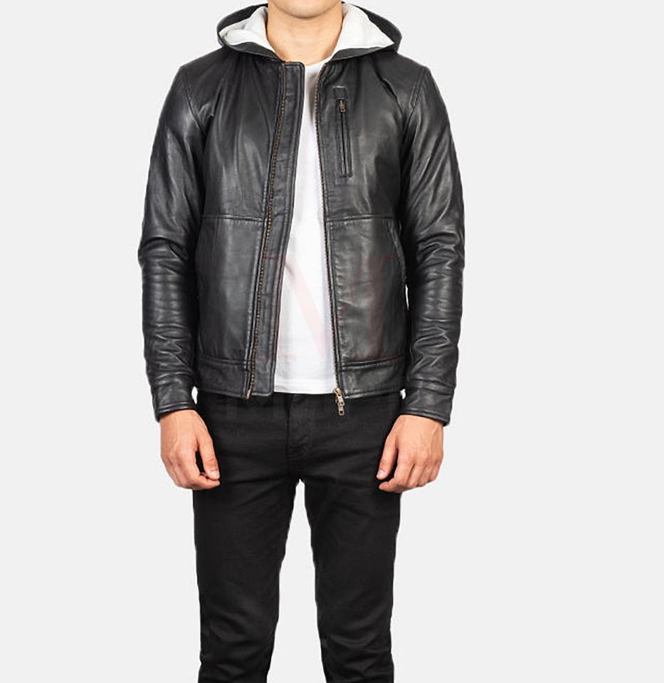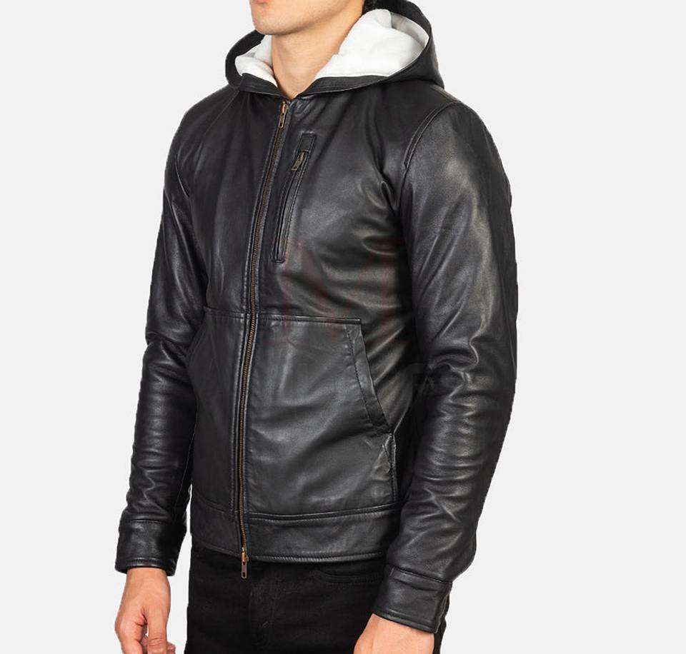 เสื้อแจ็กเก็ตหนังสีดำเข้ารูปสำหรับผู้ชายเสื้อมีฮู้ดสำหรับฤดูหนาวสินค้ามาใหม่2024