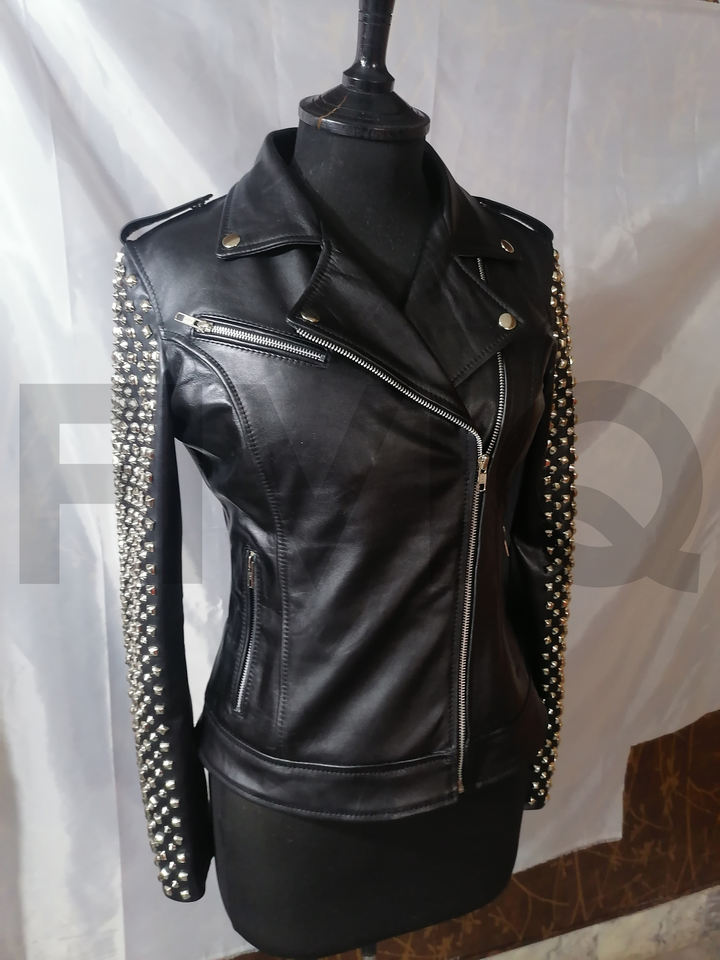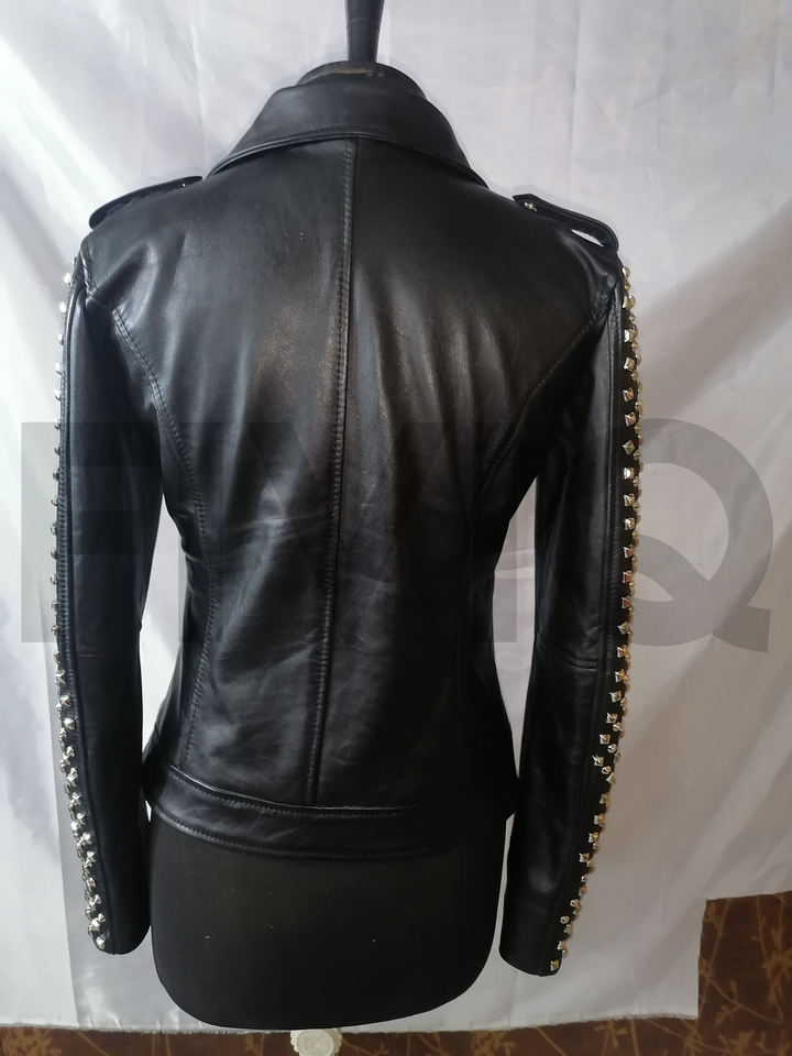 แจ็กเก็ตหนังประดับหมุดผู้หญิง