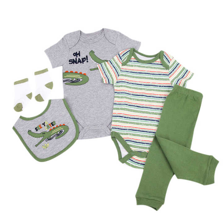 ชุดของขวัญเสื้อผ้าเด็กแรกเกิด 5 ชิ้น ชุดรอมเปอร์ กางเกง ผ้ากันเปื้อน ถุงเท้า สำหรับเด็กอ่อน ขายส่ง