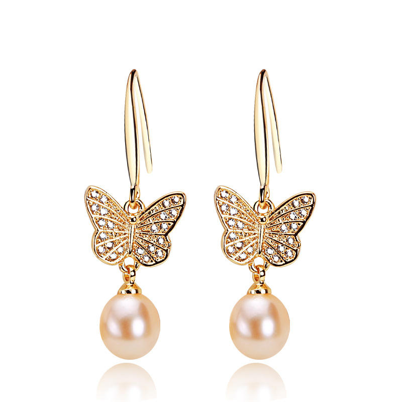 ต่างหูมุกน้ำจืดทรงผีเสื้อแบบใหม่ ขายส่ง สำหรับผู้หญิง ชุบทองประดับเพชรซิรคอน ดีไซน์ห้อยระย้า แฟชั่นเครื่องประดับ