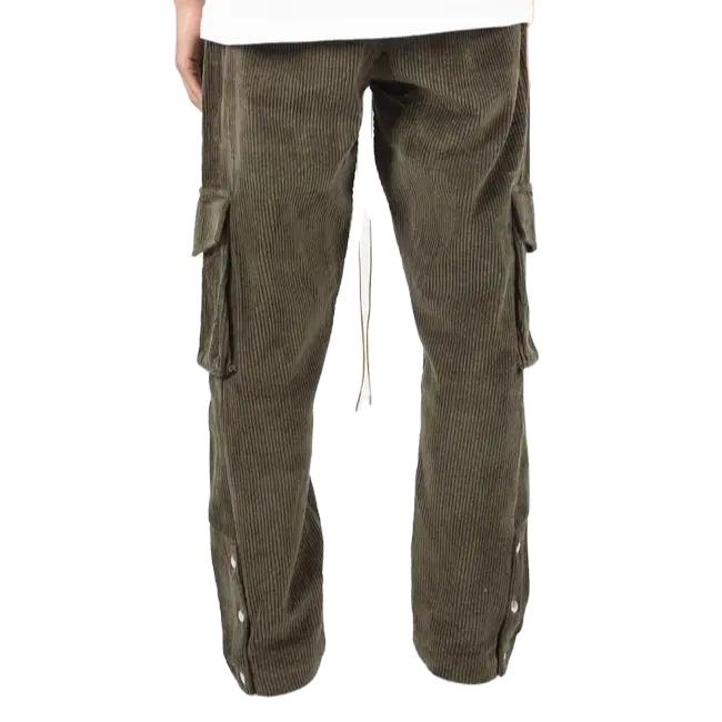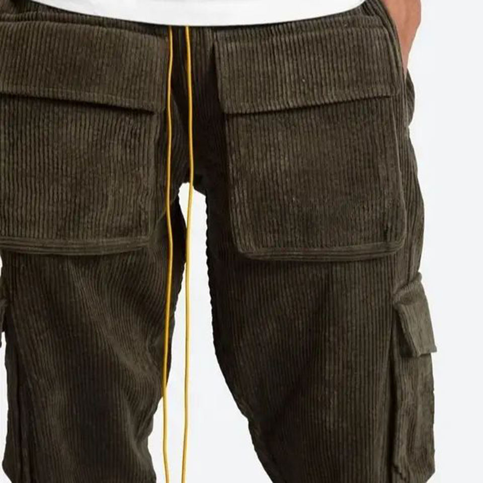 กางเกงผ้าลูกฟูกขายาวสำหรับผู้ชาย,กางเกงขายาวทรงหลวมสไตล์ลำลองสีล้วนทำจากผ้าฝ้ายปี2023