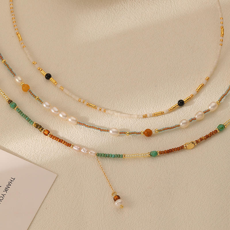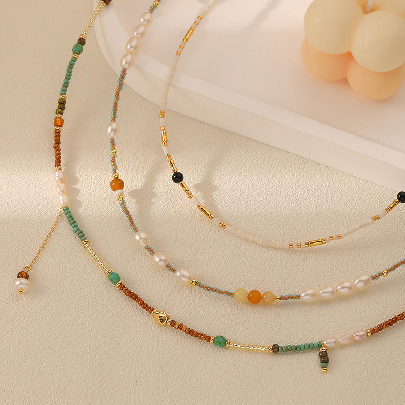 สร้อยคอลูกปัดสีขาวสไตล์โบฮีเมียนคลาสสิกดีไซน์ใหม่เครื่องประดับขายดีพร้อมไข่มุกและโลหะผสมวัสดุหลัก