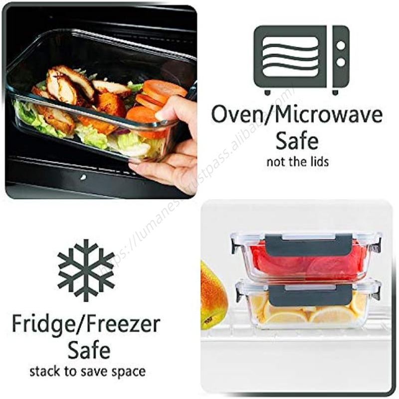 กล่องใส่อาหารแก้วโบโรซิลิเกตดีไซน์ใหม่พร้อมฝาปิดสำหรับขายส่ง กล่องข้าวกลางวันแบบเบนโตะ