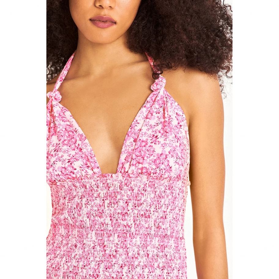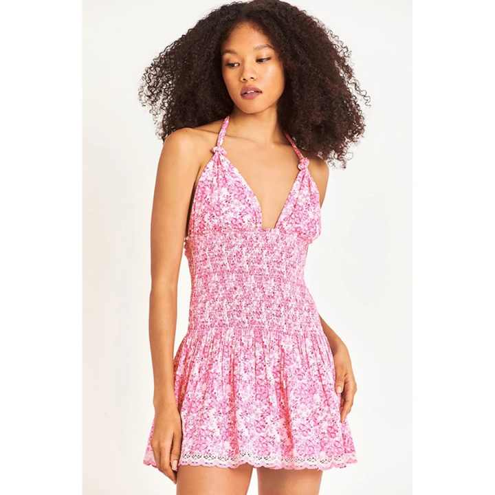 Wholesale New Design French Open Back Floral Print Hanging Neck Dress
