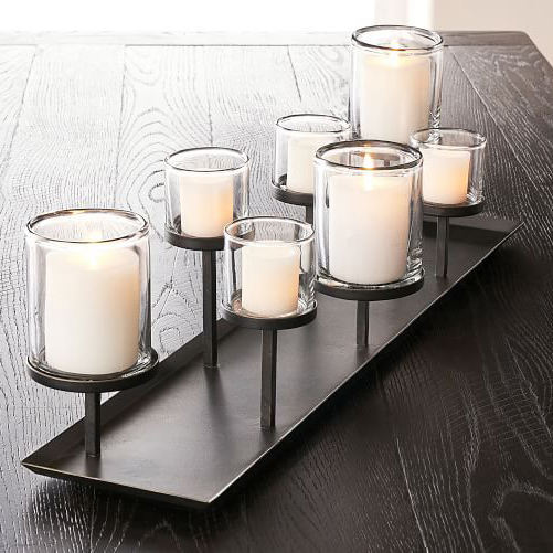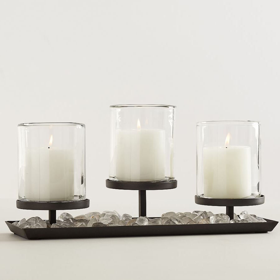 ขายส่งเชิงเทียนเหล็กทรงสี่เหลี่ยมดีไซน์ใหม่สำหรับตกแต่งบ้าน วางบนโต๊ะ สีดำ