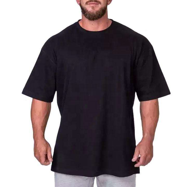 เสื้อยืดสีดำพรีเมี่ยมไซส์ใหญ่พิเศษสำหรับผู้ชายเสื้อยืดครอปคอกลมผ้าคอตตอน100% 250Gsm
