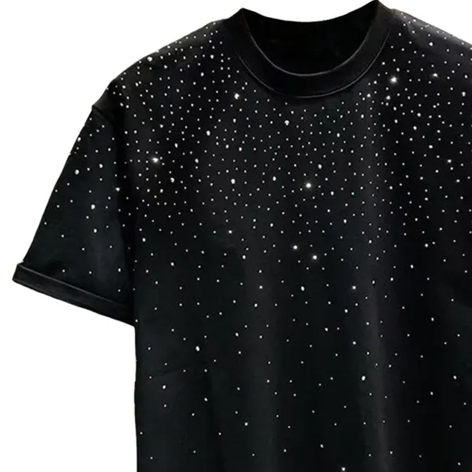 เสื้อยืดลายใหม่ประดับเพชรเทียมสำหรับผู้ชาย แฟชั่นสตรีทแวร์ พิมพ์ลายตามสั่ง เสื้อยืดคอวีประดับเพชรเทียม
