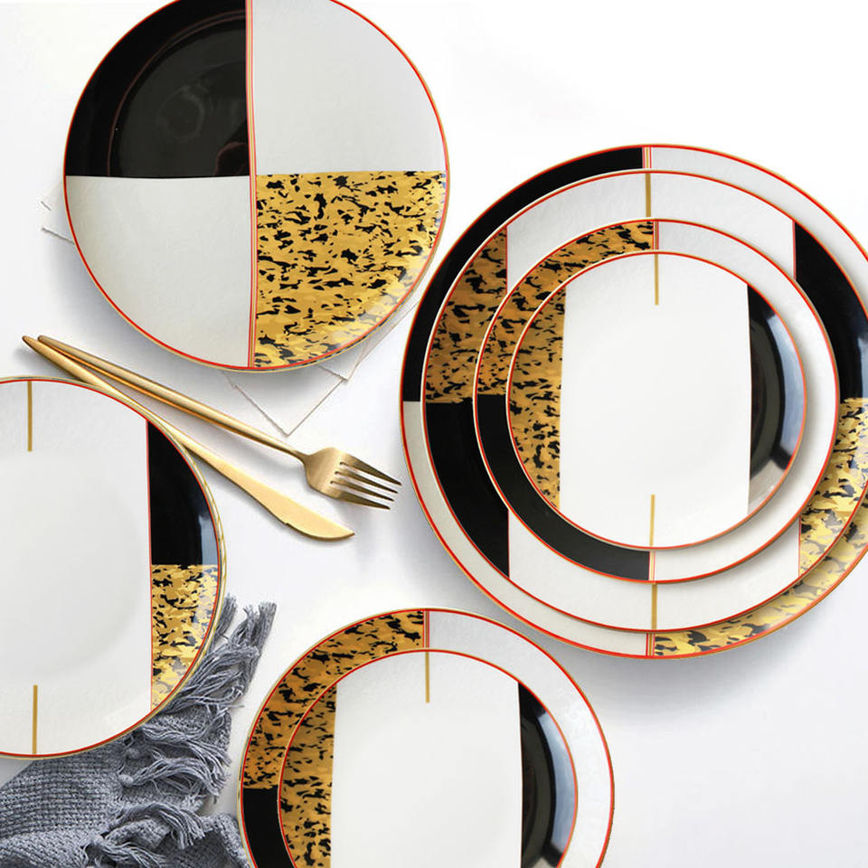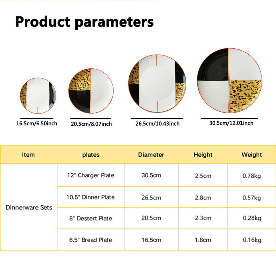 Product Name:Wholesale Wedding Restaurant Cheap Golden Black Plates Set