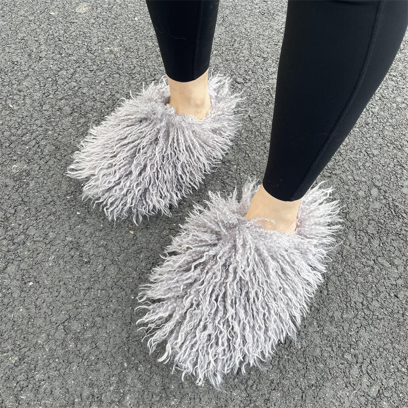 รองเท้าแตะขนแกะเทียมแบบขนยาวดีไซน์ใหม่
