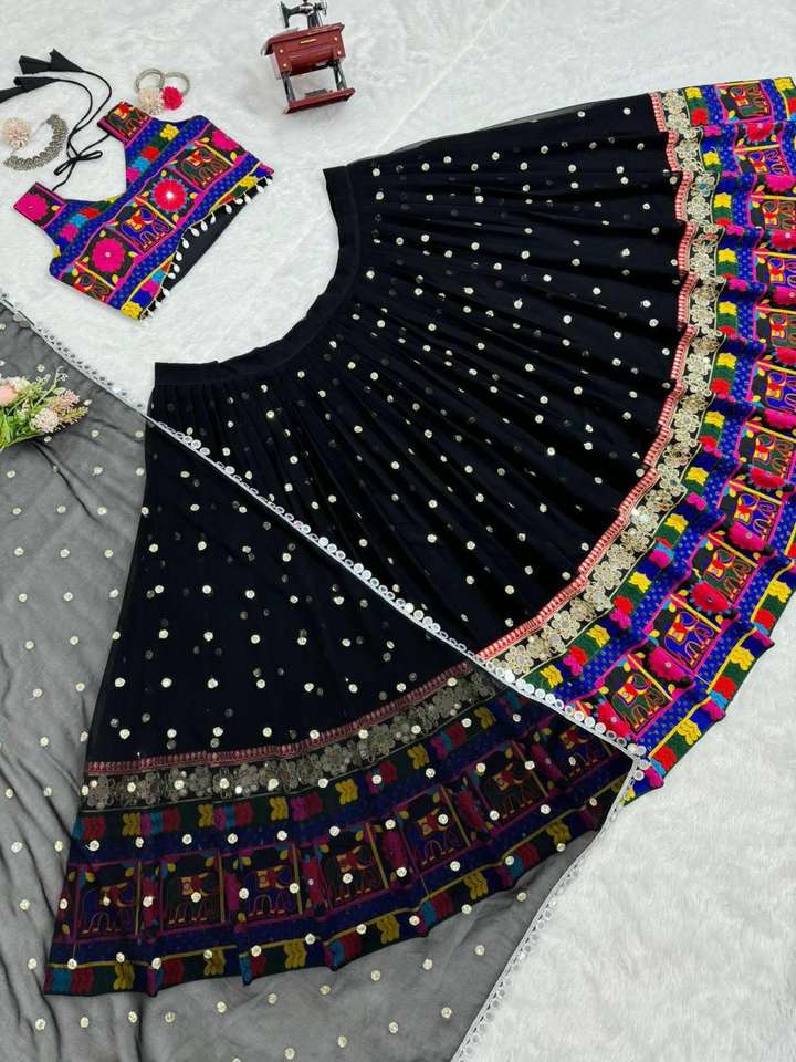 Navratri ผ้าเเท้เทียมแบบพิเศษเย็บตะเข็บที่สวยงามพร้อมกระจกจริง lehenga choli และ dupatta