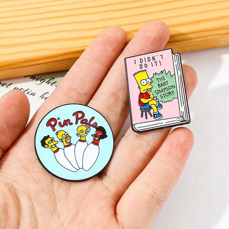 เข็มกลัดโลหะผสมสังกะสีเคลือบเงา ดีไซน์ใหม่ ขายส่ง รูปทรงแปลกตา สำหรับทุกเพศ ลายอนิเมะ ซิมป์สัน ทีวี ภาพยนตร์ ของสะสม