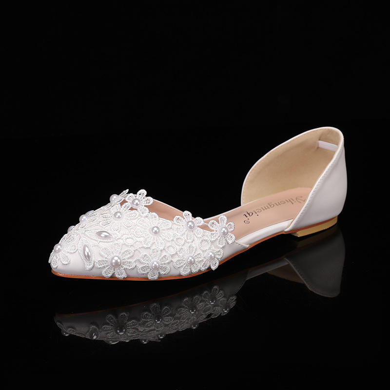 ชื่อสินค้า:รองเท้าส้นแบนหนัง PU สำหรับผู้หญิง รองเท้าสีขาวลูกไม้สำหรับงานแต่งงาน รองเท้าส้นแบนสำหรับเจ้าสาว