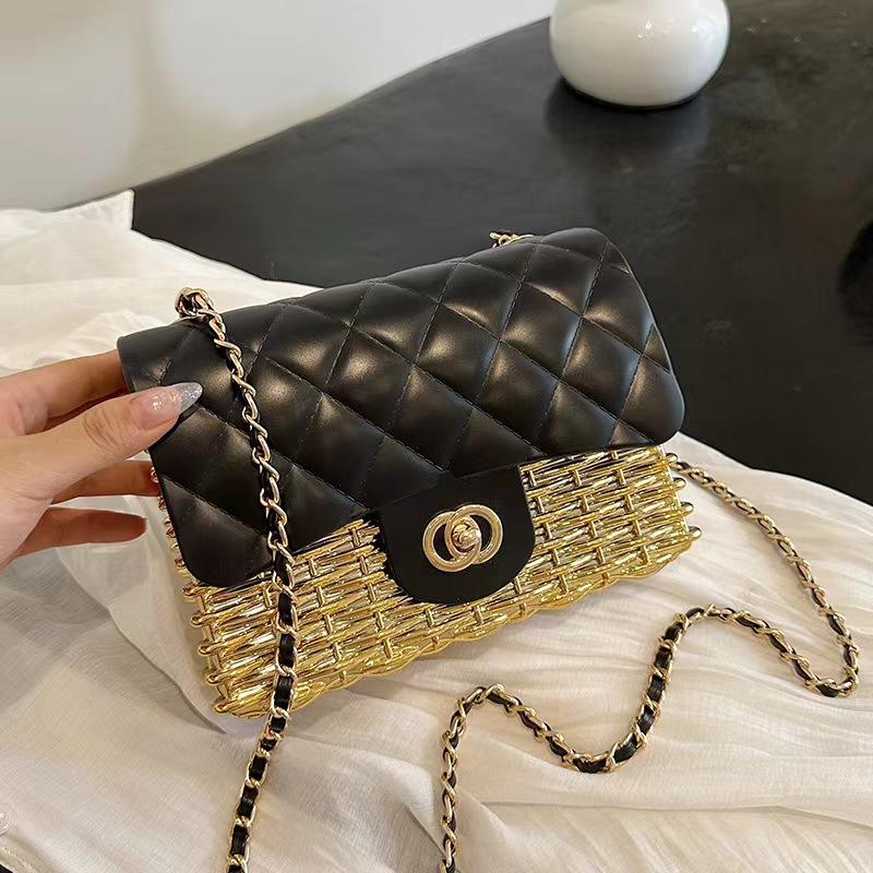 กระเป๋าสะพายไหล่สายโซ่ทำจากพีวีซีทรงสี่เหลี่ยมสำหรับผู้หญิงกระเป๋าพาดลำตัวแฟชั่นใหม่สำหรับฤดูร้อน